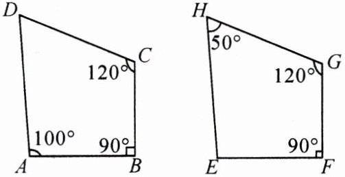 2.如图,在四边形 ABCD 与四边形 EFGH 中,∠A = 100°,∠B = 90°,∠C = 120°,∠F = 90°,∠G = 120°,∠H = 50°,则四边形 ABCD 与四边形 EFGH ____________.(填“一定相似”或“不一定相似”)