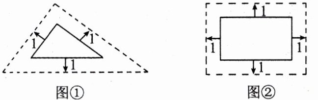 甲:将边长为 3,4,5 的三角形按图①的方式向外扩张,得到新三角形,它们的对应边间距为 1,则新三角形与原三角形相似;
