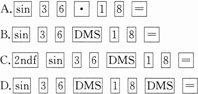 D.$\boxed{\sin}\ \boxed{3}\ \boxed{6}\ \boxed{\text{DMS}}\ \boxed{1}\ \boxed{8}\ \boxed{\text{DMS}}\ \boxed{=}$
