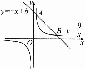 9.(2024·青海)如图,在同一平面直角坐标系中,一次函数$y = -x + b$和反比例函数$y = \frac{9}{x}$的图象相交于点$A(1,m),B(n,1)$.