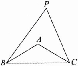 12. 如图,在$\triangle ABC$中,$AB = AC = 5$,$BC = 8$. 若$\angle BPC = \frac{1}{2}\angle BAC$,则$\cos\angle BPC =$______.
