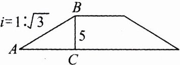 4.如图,某地修建的一座建筑物的截面图的高BC = 5 m,坡面AB的坡度为1∶$\sqrt{3}$,则AB的长度为 ( )