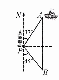 过P作PC⊥AB于C,在Rt△APC中,因为∠A = 37°,AP = 100海里,所以PC = AP·sinA = 100×sin37°≈100×0.6 = 60(海里),AC = AP·cos37°≈100×0.8 = 80(海里),在Rt△PBC中,因为∠B = 45°,所以BC = PC = 60(海里),所以AB = AC + BC = 80 + 60 = 140(海里),答:B处距离A处约有140海里