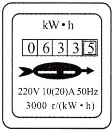 (3)计量方法:用电器在某段时间内消耗的电能等于这段时间起始和结束时电能表的示数($W_{1},W_{2}$)之,即W=W2-W1