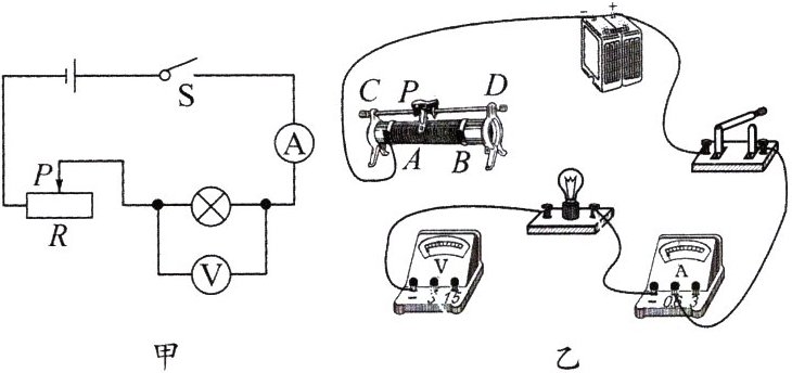 (2)图甲是他画出的实验电路图,请你根据电路图用笔画线代替导线,帮他将如图乙所示的实物电路连接完整。