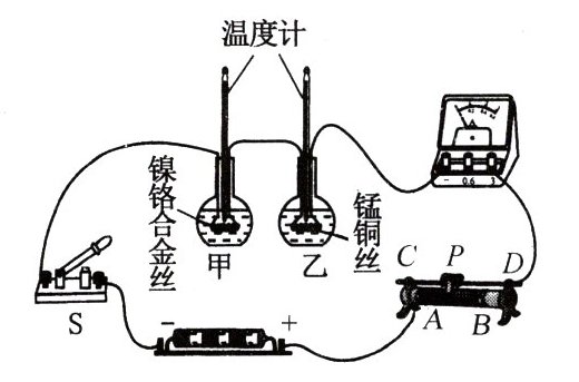 - (2)为了便于比较两种电阻丝通过电流后产生热量的多少,甲、乙两瓶中要装入______、______的同种液体。