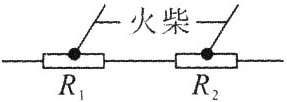 4. 将两电热丝$R_{1}$、$R_{2}$串联起来,接在电路中。如图所示,若$R_{1}>R_{2}$,则先被点燃的火柴是( )