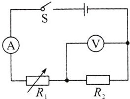 1. (2022·无锡)如图所示,电源电压保持不变,$R_1$是电阻箱,最大阻值为$R$,$R_2$是定值电阻。闭合开关S,当电阻箱阻值调为$R$时,电压表示数为3 V,电阻箱的功率为0.9 W;当电阻箱阻值调为0.5$R$时,电压表的示数变化了1.5 V。则下列说法中正确的是 ( )