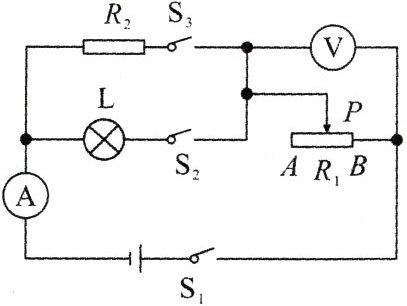(2)只闭合开关S和$S_2$,将滑动变阻器$R_1$的滑片$P$移到中点时,电流表示数为0.15 A,则电源电压是多少?