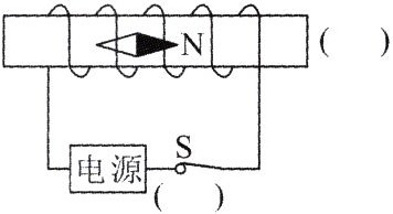 10. (2022·广元)在图中相应的括号中,标出永磁体的“N”或“S”极和电源的“+”或“-”极。