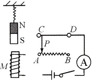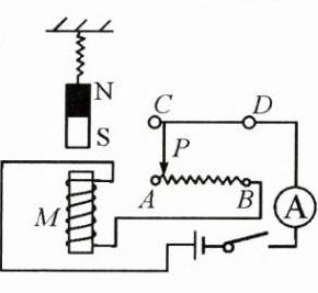 12. 如图所示,闭合开关,发现弹簧开始被压缩。把滑动变阻器的滑片 P 向 B 端滑动时,弹簧继续被压缩。请用笔画线代替导线,把电路连接完整(导线不能交叉,弹簧在其弹性限度范围内)。