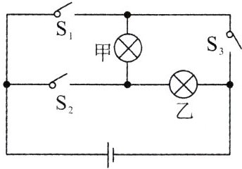 B. 只闭合$S_{2}$、$S_{3}$时,甲、乙两灯的实际功率之比为 2:1
