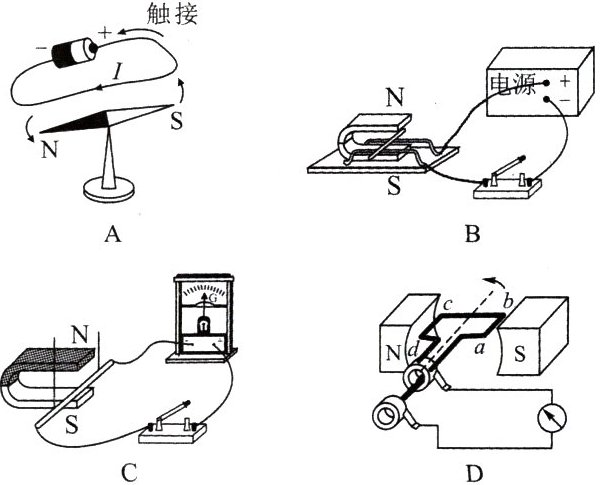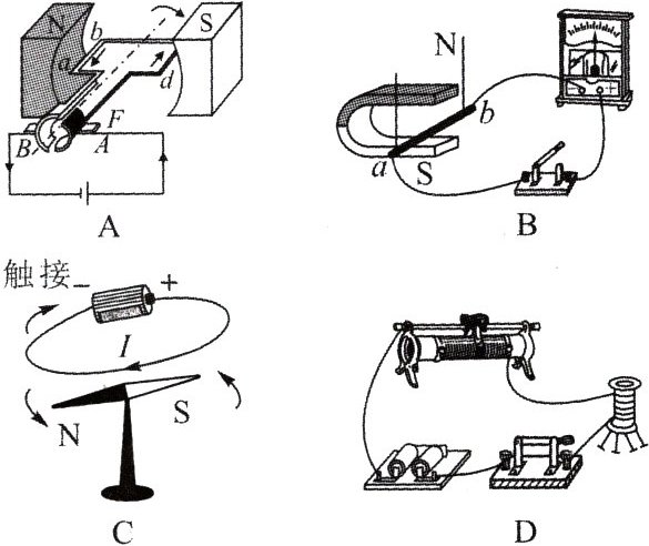 4.(2022·临沂)我市今年投入运营的第二批“沂蒙红”新能源公交车的动力装置是电动机。下列选项中能说明其工作原理的是 ( )