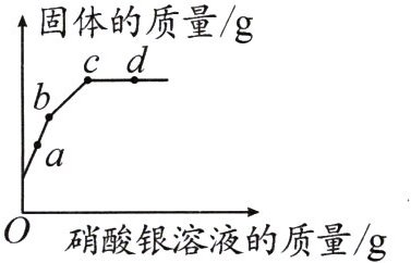 9.向一定量银、铜、铁混合金属中加入硝酸银溶液充分反应,固体的质量与加入硝酸银溶液的质量关系如图所示。下列说法不正确的是 ( )