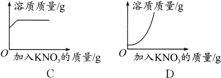 D. 溶质质量/g O 加入KNO₃的质量/g
