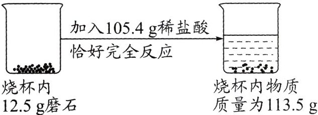 5.(2024·达州)化学兴趣小组的同学做实验时不慎把稀盐酸洒在实验室的磨石地板上,发现有气泡冒出。查阅资料得知,磨石中含有碳酸钙,同学们用同种磨石进行了如下实验(假设磨石中的其他成分不参与反应,也不溶于水,生成的气体全部逸出)。