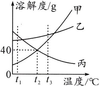 b.将甲、乙、丙三种物质$t_{2}$℃时的饱和溶液升温至$t_{3}$℃时,所得溶液的溶质质量分数由大到小的顺序是乙>甲=丙