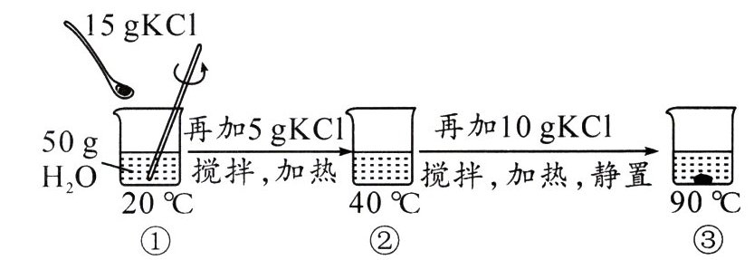 4.(2024·宜宾)为探究KCl固体在水中的溶解情况,进行如图所示的操作(忽略水的蒸发)。下列说法错误的是 ( )