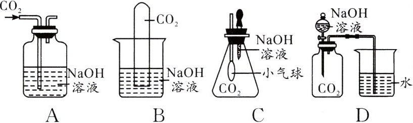 10.下列验证“CO₂与NaOH溶液反应”的装置中,不能观察到明显现象的是(装置气密性均良好) ( )