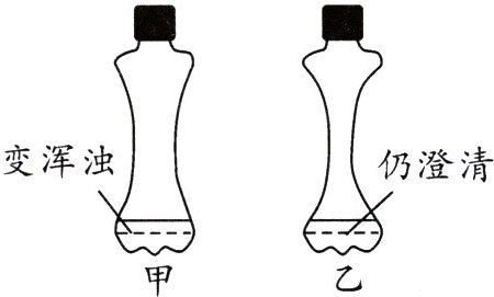 11.(2024·包头改编)向甲、乙两个等体积、充满CO₂的软塑料瓶中,分别倒入等体积的澄清石灰水与NaOH溶液(密度近似相等),拧紧瓶盖振荡后,现象如图所示。下列说法错误的是( )