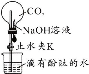 12.用如图喷泉实验装置研究CO₂与NaOH溶液的反应。将NaOH溶液挤入烧瓶,振荡,打开弹簧夹K,水倒吸入烧瓶,形成喷泉,烧瓶内溶液呈红色。