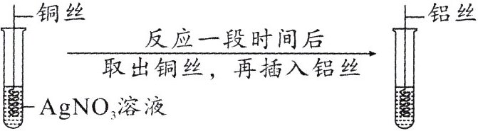 (1)铜丝插入AgNO₃溶液一段时间后,观察到的两个现象分别是______________________,发生反应的化学方程式是______________________。