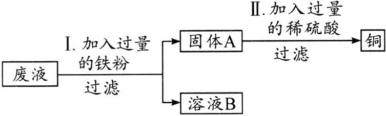 15.某化学兴趣小组的同学想从含有Al₂(SO₄)₃、CuSO₄的废液中回收金属铜,设计流程如图: