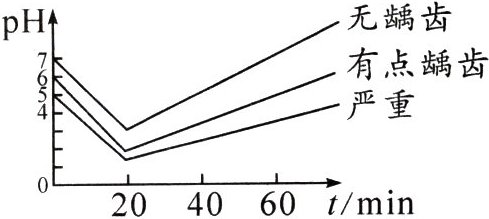 (1)小丽发现龋齿会影响葡萄糖在嘴中转化为乳酸,如图,在第______分钟时葡萄糖全转化为乳酸,龋齿越严重 pH 越______。