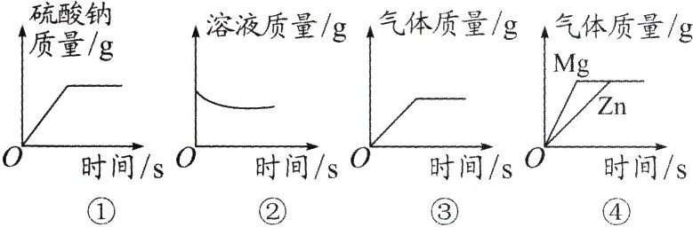 D.图④:将足量的金属镁片和锌片分别与等质量的相同质量分数的稀硫酸混合