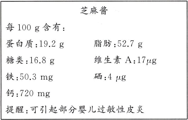 19.如图是某芝麻酱的部分说明书。下列关于该芝麻酱判断正确的是 ( )