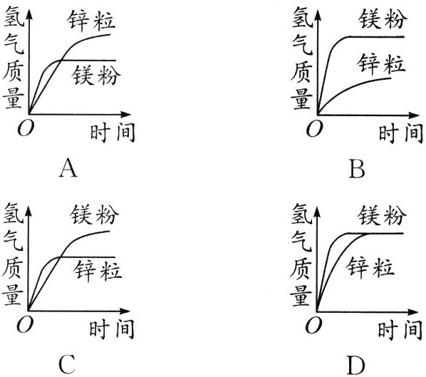 1. 取等质量的镁粉和锌粒放入两支试管中,分别加入足量的稀盐酸。下图中与实验结果相符的是 ( )