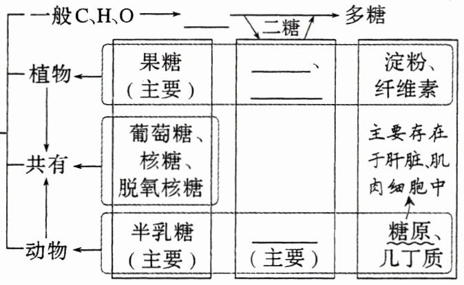 结构物质→核糖、脱氧核糖、纤维素、几丁质