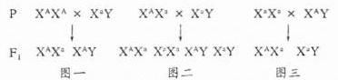 若子代只出现一种性状,则该杂交组合中的雌果蝇代表的性状为显性(如图一);若子代中雌、雄果蝇均含有两种不同的性状且各占1/2,则该杂交组合中雌果蝇代表的性状为显性(如图二);若子代果蝇雌、雄各为一种性状,则该杂交组合中的雄果蝇代表的性状为显性(如图三)。