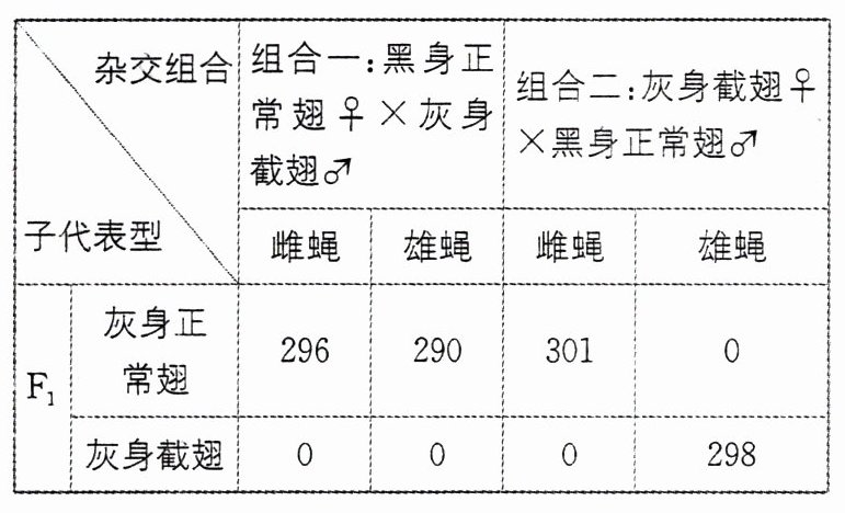 (1)X 杂交组合二中截翅雌果蝇与正常翅雄果蝇杂交,F1雌果蝇全为正常翅,雄果蝇全为截翅(杂交组合一、二是用纯种正常翅、截翅果蝇进行的正反交实验,正反交实验结果不一致)