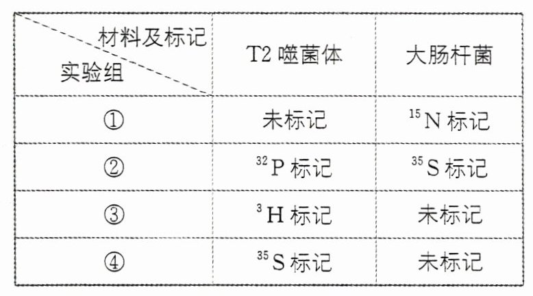 1.(2022·海南卷,13)某团队从下表①~④实验组中选择两组,模拟T2噬菌体侵染大肠杆菌实验,验证DNA是遗传物质。结果显示:第一组实验检测到放射性物质主要分布在沉淀物中,第二组实验检测到放射性物质主要分布在上清液中。该团队选择的第一、二组实验分别是 ( )