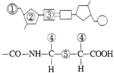1. 在证明DNA是遗传物质的实验中,赫尔希和蔡斯分别用³²P和³⁵S标记T2噬菌体的DNA和蛋白质,据图分析标记元素所在部位并说出理由:______________________________。该实验不能标记C、H、O、N这些元素的原因是______________________________。