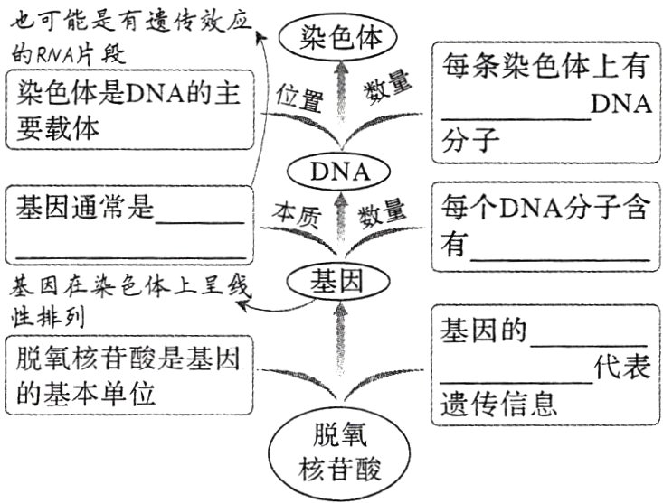3. 一个或两个 有遗传效应的DNA片段 许多个基因 脱氧核苷酸排列顺序