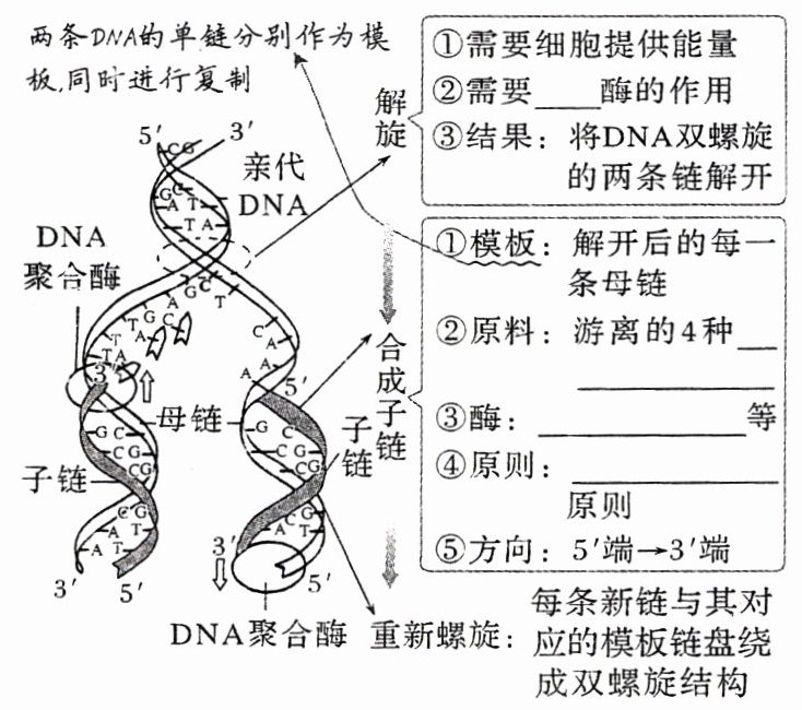 原因:DNA具有独特的________结构,为复制提供了精确的模板,通过________原则,保证了复制能准确地进行