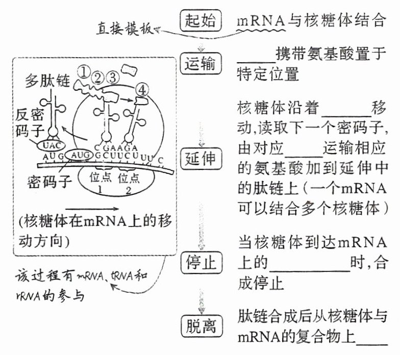 (3)tRNA mRNA tRNA 终止密码子 脱离