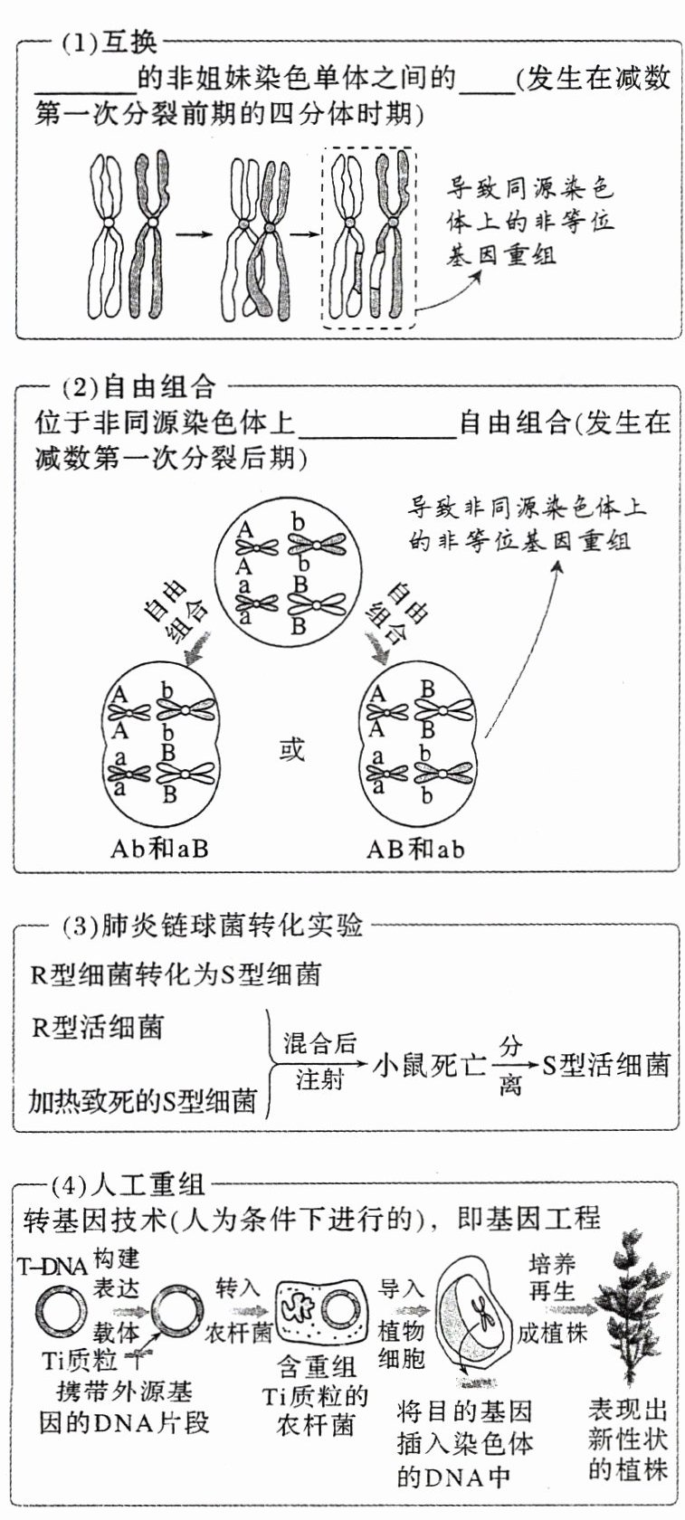 @@× 提示 基因重组会导致出现新表型,导致生物性状变异。