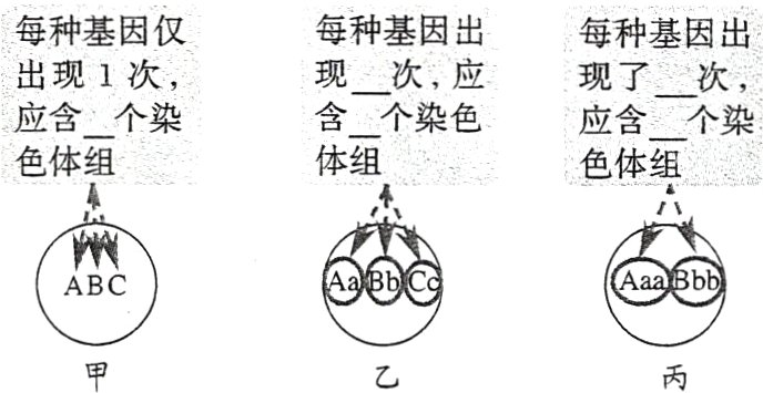 在细胞或生物体的基因型中,控制同一性状的基因(包括同一字母的大、小写)出现几次,则含有几个染色体组。