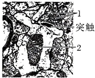 D [神经冲动传导至轴突末梢,可引起突触小泡1与突触前膜融合,从而通过胞吐的方式将神经递质释放到突触间隙,A正确;1中的神经递质释放后可与突触后膜上的受体发生特异性结合,从而引起下一个神经元兴奋或抑制,B正确;2表示的是线粒体,线粒体是细胞中的“动力车间”,其可以为神经元间的信息传递供能,C正确;2所在的神经元可以和周围的多个神经元之间形成联系,因而不只接受1所在的神经元传来的信息,D错误。]