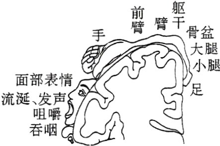 ①除头面部肌肉代表区外,皮层代表区的位置与躯体各部分的关系是倒置的。②皮层代表区范围的大小与躯体的大小无关,与躯体运动的精细程度有关。③对躯体运动的调节支配具有交叉支配的特征(头面部多为双侧性支配),一侧皮层代表区主要支配对侧躯体的肌肉。