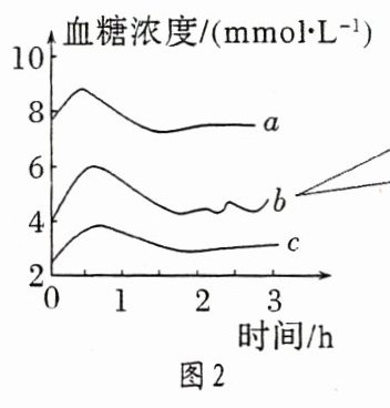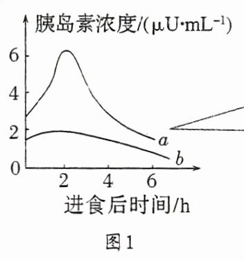 图1表示正常人和糖尿病患者的胰岛素浓度变化曲线,则____为正常人,判断的依据是胰岛素含量多且波动幅度大的为正常人。