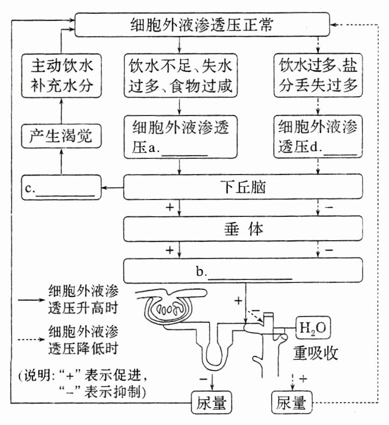 (3)①升高 降低 大脑皮层 抗利尿激素 ②减少 降低