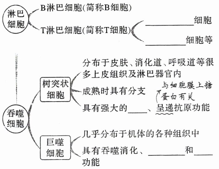 抗原呈递细胞 ____细胞、树突状细胞和巨噬细胞都能________抗原,并且可以将抗原信息暴露在细胞表面,以便呈递给其他免疫细胞,因此,这些细胞统称为抗原呈递细胞