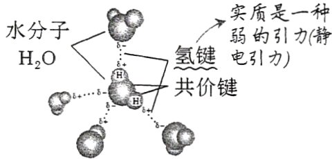水分子H₂O:实质是一种弱的引力(静电引力),氢键,共价键