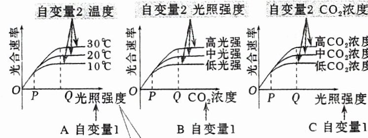 Q点:横坐标所表示的因子不再是影响光合速率的因素,影响因素主要为各曲线所表示的其他因子