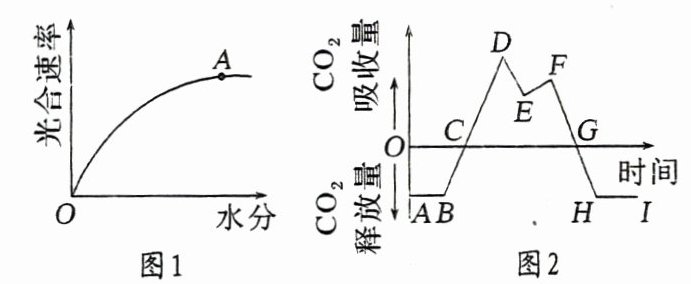 E处光合作用强度暂时降低,是因为温度高,蒸腾作用过强,部分气孔关闭,影响了____的供应