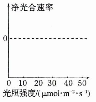 (4)由于$ygl$呼吸速率较高,且有较高的光补偿点,因此在$0~50(\mu mol\cdot m^{-2}\cdot s^{-1})$范围的低光照强度下,$WT$和$ygl$的净光合速率如图见答案。